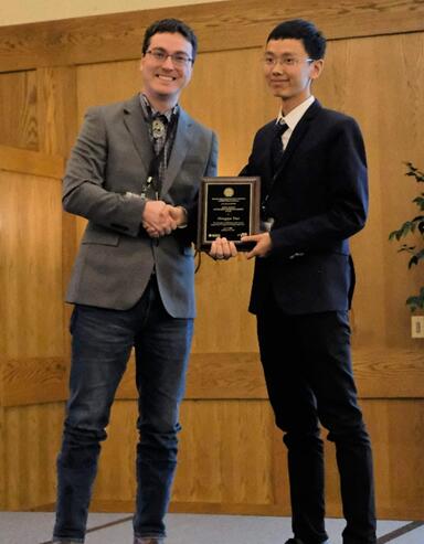 IPMHVC自2000年来每两年举办一届,每届设三个学生奖。其中Tom R. Burkes杰出研究生奖以著名脉冲功率专家Tom R. Burkes命名,从2002年开始设立,每年颁发给两名在脉冲功率研究和功率器件领域有特殊贡献的学生,到目前为止仅有一名复旦大学学生在2010年获奖。今年,我校学生戴宏宇让中国高校再现权威国际会议学生奖荣誉榜。本届会议主席。美国桑迪亚(Sandia)国家实验室的George Laity亲自为戴宏宇颁发。