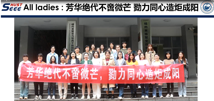 随后,由华中科技大学电气学院教授郭伟欣作了《依托国家级大科学装置探索人类未来能源》精彩学术报告。报告伊始,郭教授就展示了一张聚变所全体女士(师生)合影,以及她们为今天IEEE PES DAY活动所特别制作的标语“芳华绝代不啻微芒 勠力同心造炬成阳”,生动活泼地展现了聚变所女性科研工作者致力于人造太阳装置从事聚变能研究的热情和希冀。随后郭教授回顾了J-TEXT实验室的发展历程,讲述了华科大聚变人在升起可控核聚变这轮全球瞩目的“红日”征程中所取得的辉煌成果,并勾勒了人类未来掌握可控核聚变技术的蓝图。