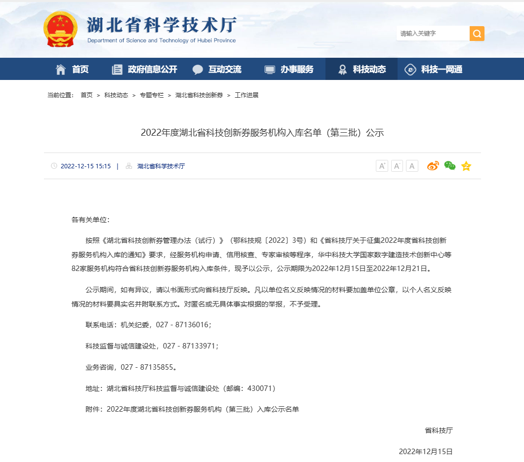 湖北省科技厅公示2022年度湖北省科技创新券服务机构入库名单(第三批),华中科技大学电气学院成功入选为省科技创新券服务机构,成为入库的44家高校之一。