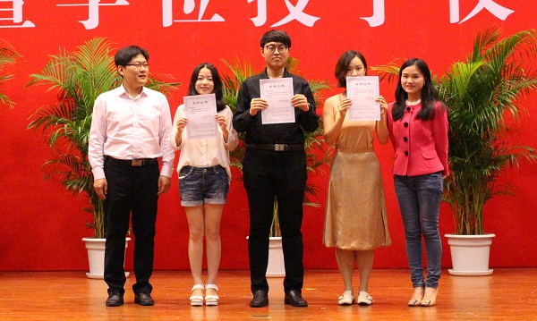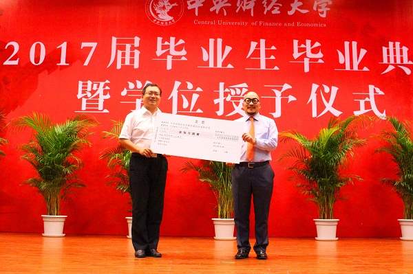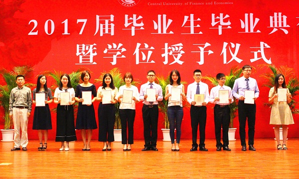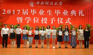 典礼第一项是颁奖礼。为推进我校卓越法律人才培养改革,进一步提高法律人才培养质量与水平,在北京万海龙图教育咨询有限公司的支持下,我院自今年开始设立“中央财经大学卓越法律人才龙图教育奖学金”,重点对通过国家司法考试、境内外升学的优秀学生予以奖励。同时,经学院研究,今年增设“院长特别嘉许奖”,以表彰奖励响应国家号召、到革命老区或艰苦地区建功立业的优秀毕业生。学院领导、教师、校外嘉宾分别为“龙图教育奖学金”、“院长嘉许奖”、“院长特别嘉许奖”、“优秀学位论文”“校级优秀毕业生”“市级优秀毕业生”和“法律之星”获得者颁奖。