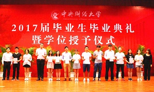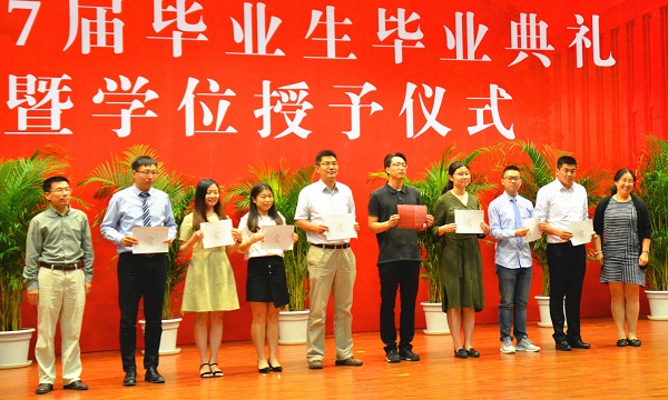 典礼之后,学位授予仪式隆重举行。院学术委员会和学位委员会委员们走上主席台,为毕业生一一拨转流苏,颁发毕业证书和学位证书并合影留念。