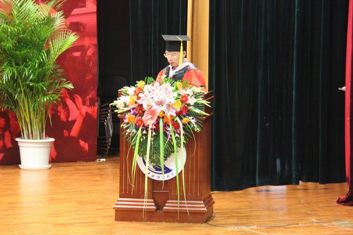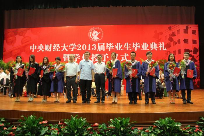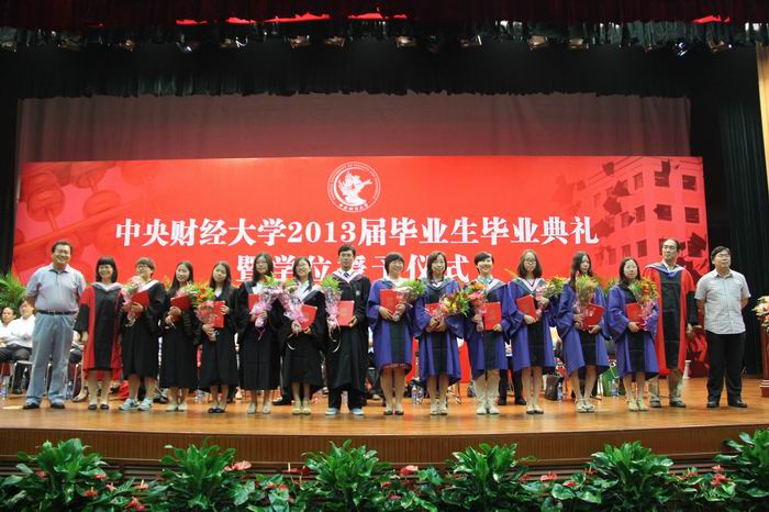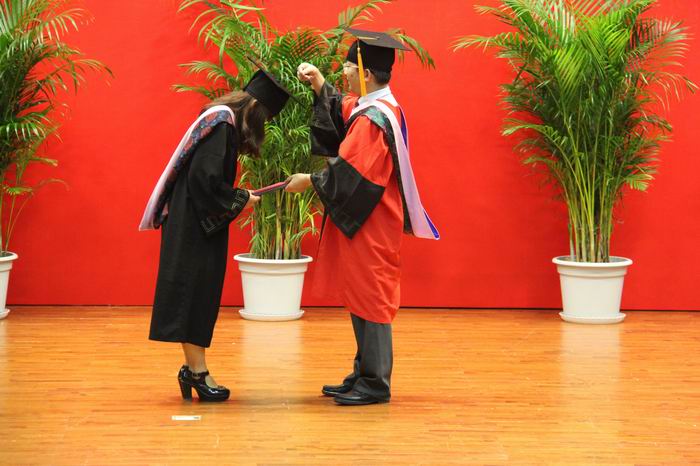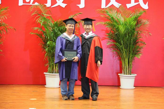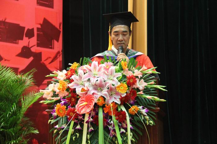 在学位授予环节,受学院委托,吴韬副院长、刘双舟副院长、院长助理高秦伟教授、院长助理尹飞教授分别宣读了2013届毕业生名单,学位委员会主席、院长郭锋教授为全体毕业生一一拨转流苏,颁发了毕业证书和学位证书并合影留念。