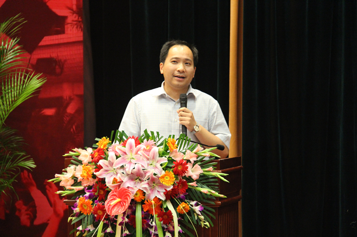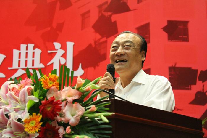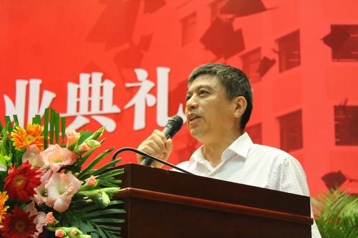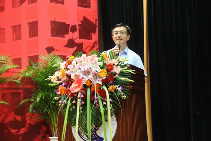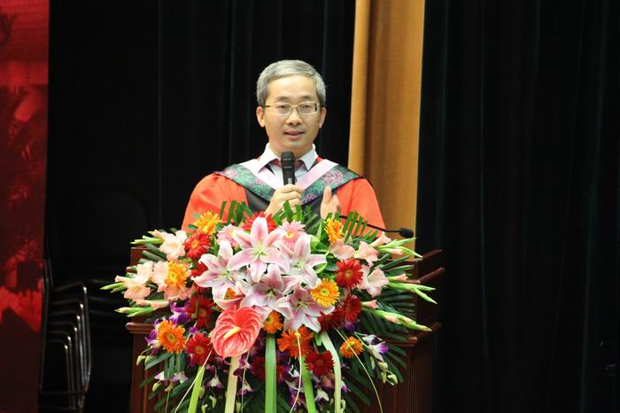 兼职教授代表、中国人寿财产保险股份有限公司副总裁杨华柏先生勉励同学们要自信、自强、自立,靠自己的奋斗创造未来;要不懈努力,同时也要注意方法;要重视寻求外力,成就一番事业。