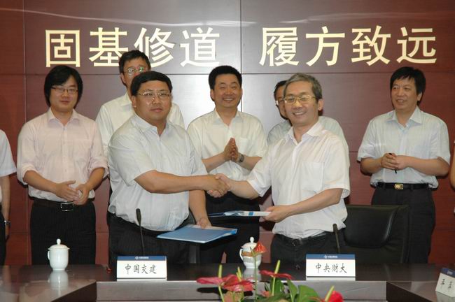 6月29日,中央财经大学法学院与中国交通建设股份有限公司合作协议书签署仪式在中交股份公司隆重举行。双方为了共同建立“产学研”相结合的育人、科研、应用一体化发展模式,以服务国家,满足行业需求,共享各自资源,提升创新能力为目标,以培养在职法律硕士为基础进行院企之间的全面合作。该合作对提升我院社会服务水平,提升办学和人才培养质量具有重要意义。