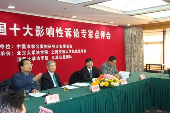 点评开始之前,我院李轩副教授以中国法学会案例研究专业委员会秘书长的身份主持了会议开幕式,强调以个案促进法治,是年度影响诉讼评选活动的初衷和理想;去年在中央政法委的推动下最高人民检察院、最高法院相继出台关于案例指导的规定,希望结合专家点评,把年度影响性诉讼升格为指导性案例。中国法学会案例研究专业委员会资深顾问周道鸾、北京大学法学院副院长汪建成、清华大学法学院副院长申卫星先后致辞。周道鸾教授首先代表中国法学会案例研究专业委员会致词,指出影响性诉讼架起法学家意见、立法部门的桥梁,意义已经超出了案件本身,他也表示中国法学会案例研究专业委员会五年来一如既往坚持和实践“个案推动法制”的研究路径和精神,值得尊重和赞扬。之后汪建成副院长代表北京大学法学院法学院致词,指出诉讼是连接法律与生活桥梁和纽带,可正是诉讼使着纸上法律变成现实中法律,使普遍法律变成个案法律,使静态法律变成动态法律,十大影响性诉讼把诉讼的这些作用基本都显示出来了。最后申卫星副院长代表清华大学法学院致词,强调影响性诉讼是从个案到一般、从静态到动态的过程,但是如果停留宣传角度,并不能发挥法学的作用,法律发展完全有赖于对于判决和判例的整理。