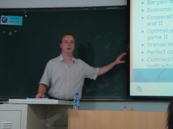 应中央财经大学法学院邀请,6月17日至24日,荷兰马斯特里赫特大学尼尔斯·菲利普森(Niels Philipsen)副教授为我院学生用英文讲授“民商、经济法和法经济学前沿”课程。08、09级法律硕士及法学硕士踊跃参加。菲利普森教授立足欧洲与美国的法律实践,深入浅出地讲授了法律经济学在竞争法、侵权法、公司法、合同法和法律规制等方面的运用,指引同学们在思考法律问题时引入经济分析,培养用不同视角理解法律制度内在理性的能力。为期一周的密集授课不仅提高了同学们的理论水平,同时也增强了同学们的英文听说能力。