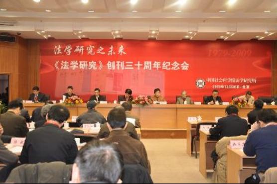 2009年12月26日上午,中国社会科学院法学研究所在中国社会科学院学术报告厅举办了以"法学研究之未来"为主题的《法学研究》创刊三十周年纪念会。中纪委驻社科院纪检组长李秋芳,全国人大法工委副主任信春鹰,最高人民法院副院长江必新,最高人民检察院副检察长朱孝清,天津市高级人民法院院长李少平,中国社会科学院学部委员、终身研究员王家福,中国社会科学院学部委员、《法学研究》现任主编梁慧星出席会议并致辞。来自全国著名法学院校代表、知名法学期刊代表及全国多所法学研究单位的100多名专家学者出席了纪念会。我院郭锋教授应邀出席了纪念会,并发表了热情洋溢的贺词,感谢《法学研究》对我院学科建设、学术研究的支持。