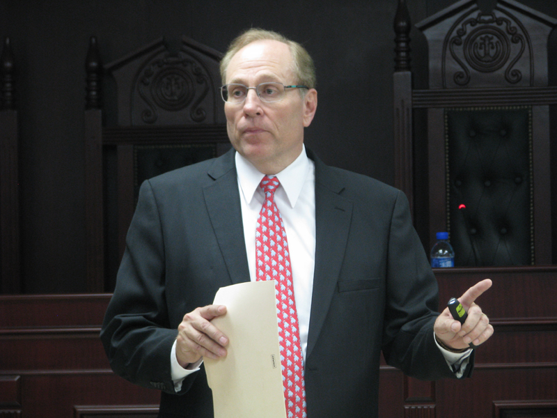 2011年10月26日晚7时,美国竞选活动家布鲁斯•汤普森(Bruce Thompson)莅临中财大厦模拟法庭为我校师生作了一场题为“谁是王者—波诡云谲的2012美国总统大选”的精彩讲座。