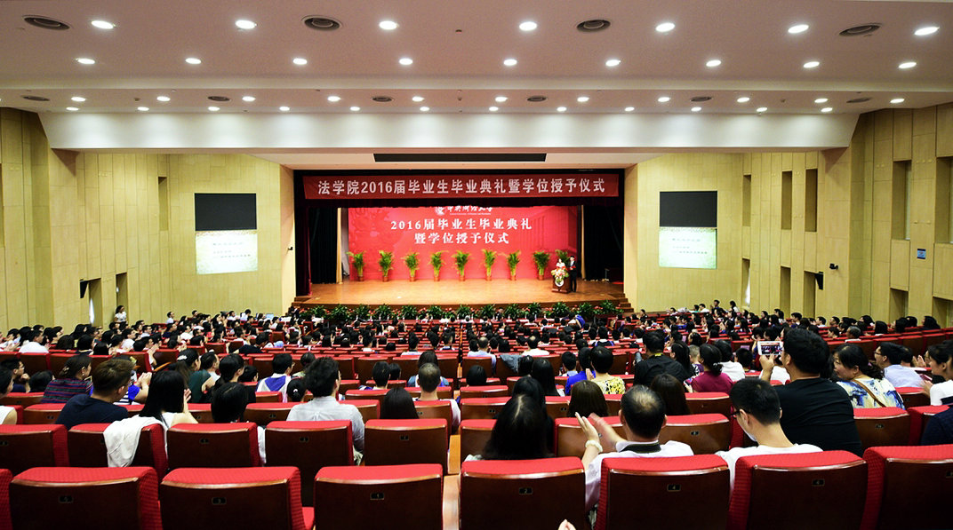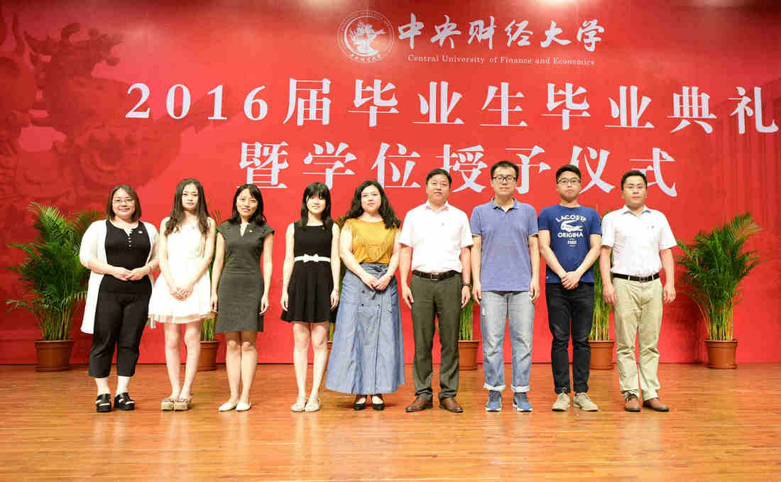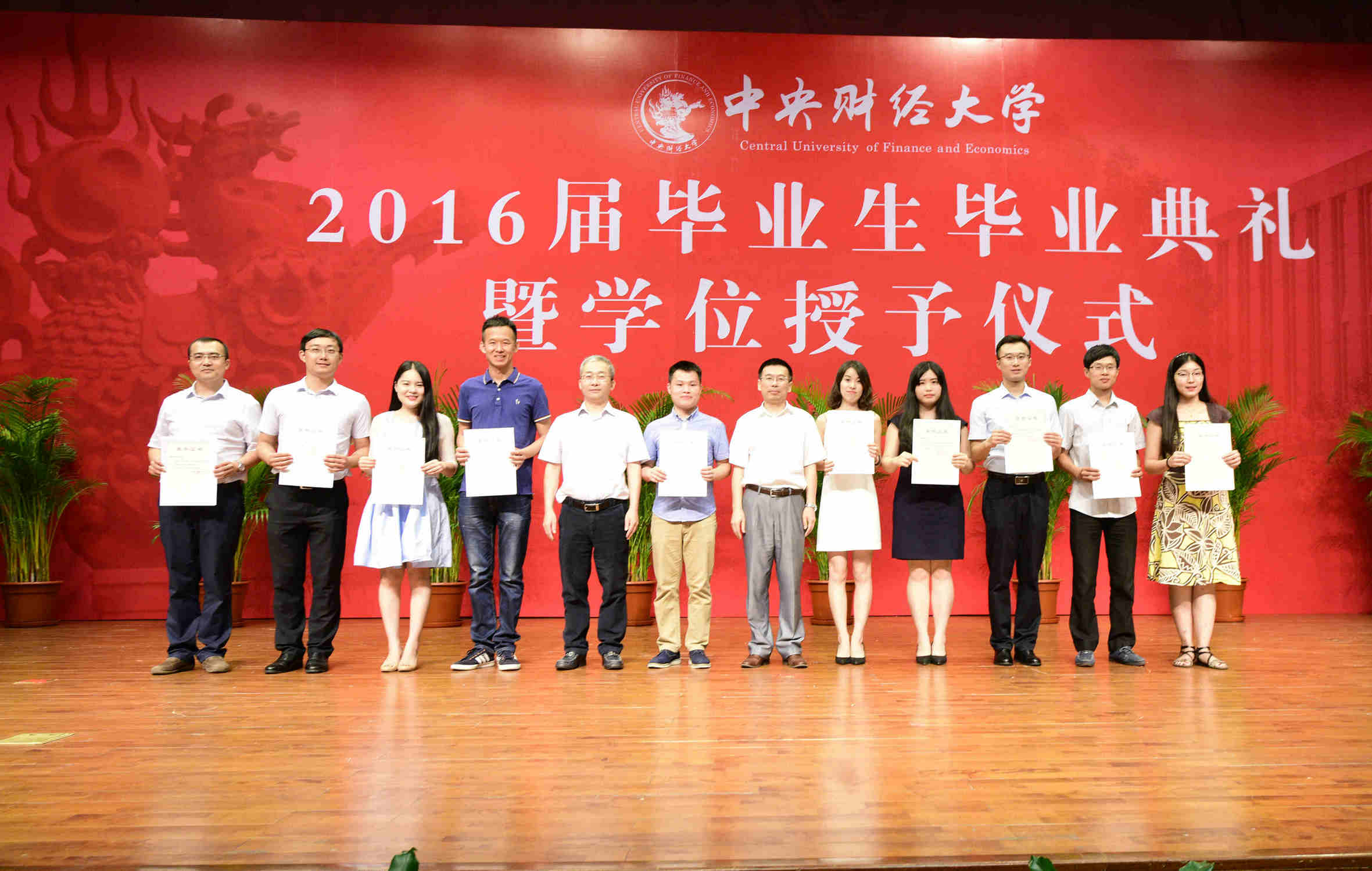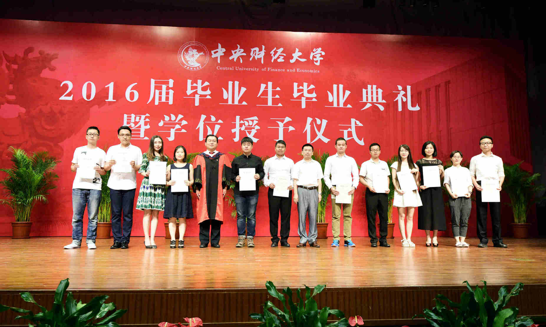 2016年6月25日下午,中央财经大学法学院2016届毕业生毕业典礼暨学位授予仪式在学术会堂206报告厅隆重举行。学院领导班子成员、教师代表和2016届全体毕业生参加典礼。出席典礼的嘉宾有最高人民法院研究室副主任、中央财经大学法学院教授郭锋先生,北京岳成律师事务所创始人岳成先生,法律小巴创始人CEO丁晓东先生,众再成律师事务所合伙人梁奇烽先生。部分学生的亲朋好友也出席典礼。典礼由中央财经大学法学院讲师杜晶博士和2016届法学硕士毕业生王鑫同学主持。