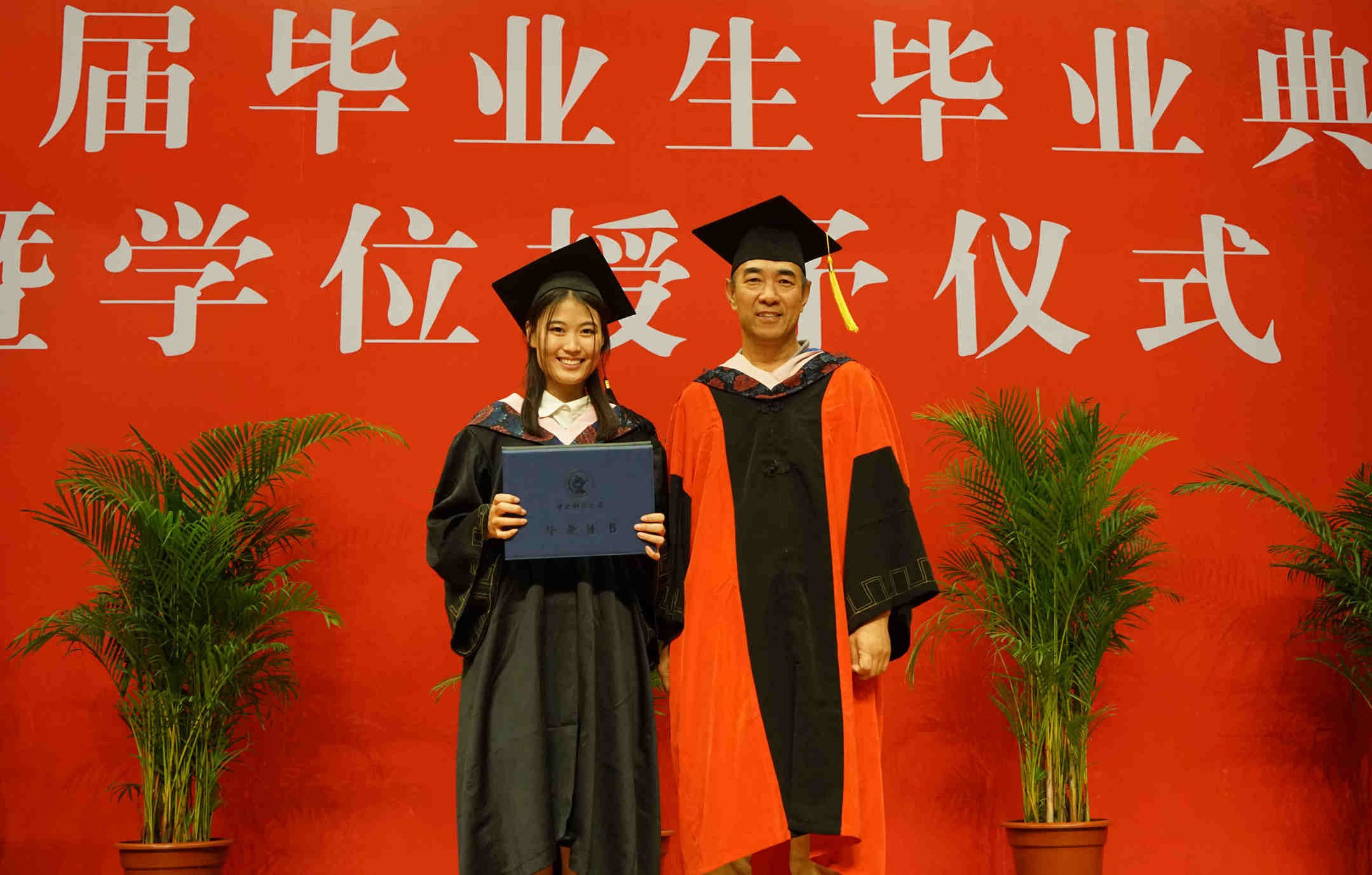 在教师寄语环节,陈华彬教授致辞。陈华彬教授首先以丑小鸭变为白天鹅的蜕变为引,对全体毕业生圆满完成学业表达了祝贺。在陈华彬教授看来,成为一名光荣而自豪的中财法律人不仅仅意味着经历了知识和学业上的蜕变,更意味着走向社会后所应具备的家国情怀。对此,陈华彬教授提出四点殷切期盼:坚守法律的底线和法律的思维,此其一;坚守道德的底线,此其二;具有人文情怀和人本思想,此其三;保持自己的身心健康,此其四。远足者有未来,远足者有牵挂,陈华彬教授的致辞如师长的殷殷嘱托,如长者的警示箴言,凝聚着中财法学院以及全体教师对全体毕业生的真挚期盼和祝福。