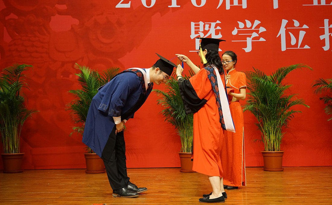 致辞之后,2016届毕业生学位授予仪式隆重举行。院学术委员会和学位委员会委员们走上主席台,为全体毕业生一一拨转流苏,颁发毕业证书和学位证书并合影留念。
