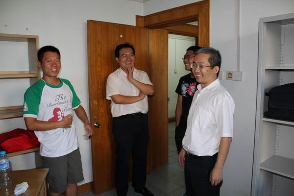 9月3日,天气晴朗,碧空如洗,法学院喜迎2012级研究生新生。下午3时许,法学院郭锋院长、刘双舟副院长、尹飞教授一行人深入学生宿舍走访看望了2012级研究生新生,给2012级新同学送去学院领导、老师们的亲切关怀。