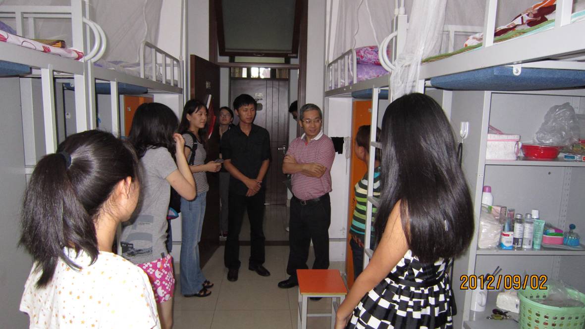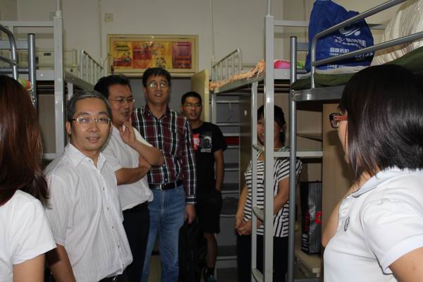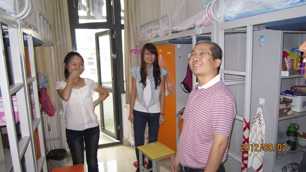 9月2日下午,中央财经大学法学院院长郭锋教授在2012级本科生辅导员李杰老师的陪同下,来到沙河校区的宿舍楼探望法学院2012级新生。