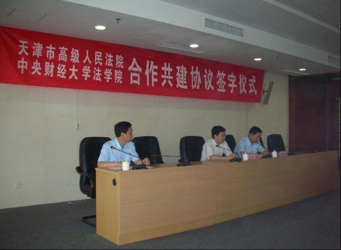 经前期考察和充分磋商,7月13日,中央财经大学法学院与天津市高级人民法院合作共建协议书签署仪式在天津市高级人民法院隆重举行。我院副院长吴韬副教授一行出席签署仪式。吴韬副院长和天津市高级人民法院政治部主任辛凤仁法官分别代表双方在合作协议上签字。合作协议的内容包括派遣学生开展专业实习、合作进行课题研究和业务培训、互派法官和教师进行人员交流等。
