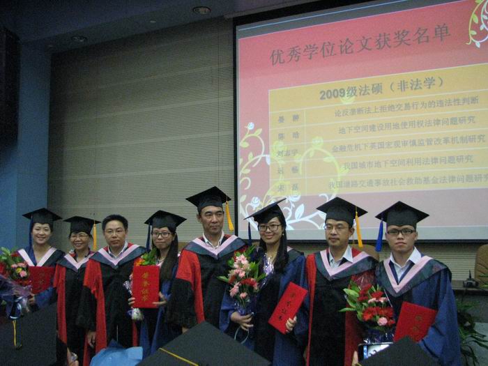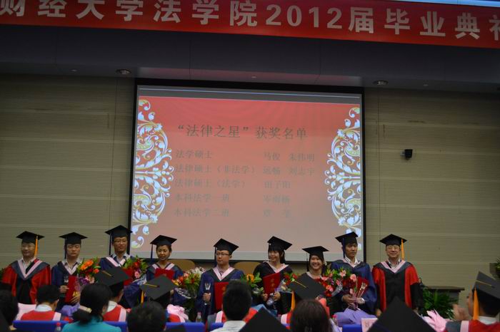 随后,2008级法学1班何璇同学、2009级法学硕士马骏同学、2009级在职法律硕士谭中令同学分别作为毕业生代表发言。他们表达了对母校、学院以及老师们辛勤培养的感激之情;同为中财法律人,他们表示在未来的工作中一定会铭记学院的嘱托和老师的叮咛,发扬中财法律人的精神,勇于担当社会责任,为国家的民主法治建设贡献自己的力量。临别之际,他们衷心祝愿学院的各项事业蒸蒸日上、再创华章!(全文另发)