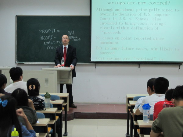 讲座由我院王克玉副教授主持。亚历山大教授首先以企业违法降低生产经营成本与洗钱犯罪的联系为切入点,讲述了经营实体在逃税漏税、非法雇工、破坏环境、降低劳工安全和卫生标准等环节中的利益转移和输送,并着重从防止和制裁洗钱犯罪的角度,对金融违法和犯罪领域新类问题的规制进行了深度剖析,并对包括中国等发展中国家的金融法制问题提出了独到的见解。讲座内容激起了我院同学们的热情和兴趣,其他院系的研究生也积极参加。讲座最后的半个小时,同学们纷纷提出问题,亚历山大教授给予了热情解答。