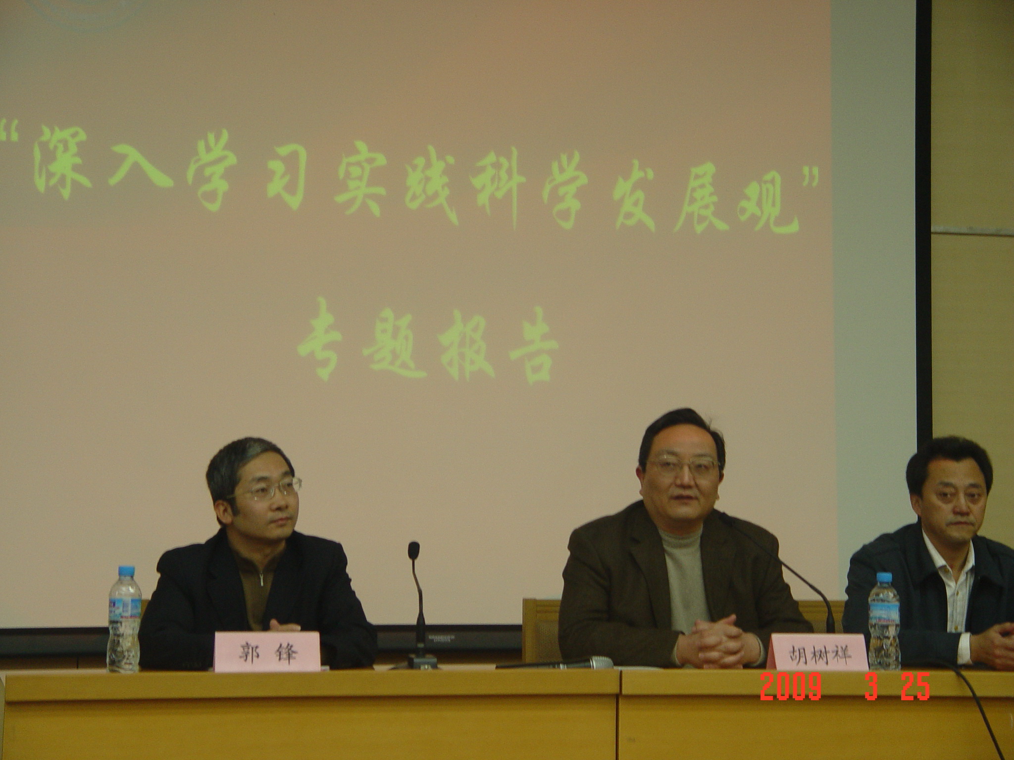 2009年3月25日下午,按照学校的统一部署,法学院全体师生济济一堂,在图配楼报告厅隆重举办“深入学习实践科学发展观专题报告会”。校党委书记胡树祥、校党委副书记倪海东、发展规划处处长吕世彦应邀出席了会议。