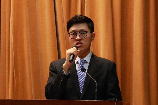 大家下午好!九月的京城告别了夏日的酷热难耐,迎来了秋天的凉爽舒畅。今天是我们中央财经大学法学院一个隆重庄严而喜庆的日子,学院迎来了300余名本科研究生同学,也是历史上我们法学院第一次有了这么多新面孔。五湖四海的有缘人,为了法治国家的同一个梦想,将自己意气风发的生命与历经十余载光辉历程的中财法学院紧紧联结在了一起。从此我们的人生便刻下了“中财法律人”这光辉永恒的烙印。而我便是这三百多名同学中的一员,我叫宋昊轩,来自2017级法律硕士(法学)班,我很荣幸,代表硕士研究生做新生发言。