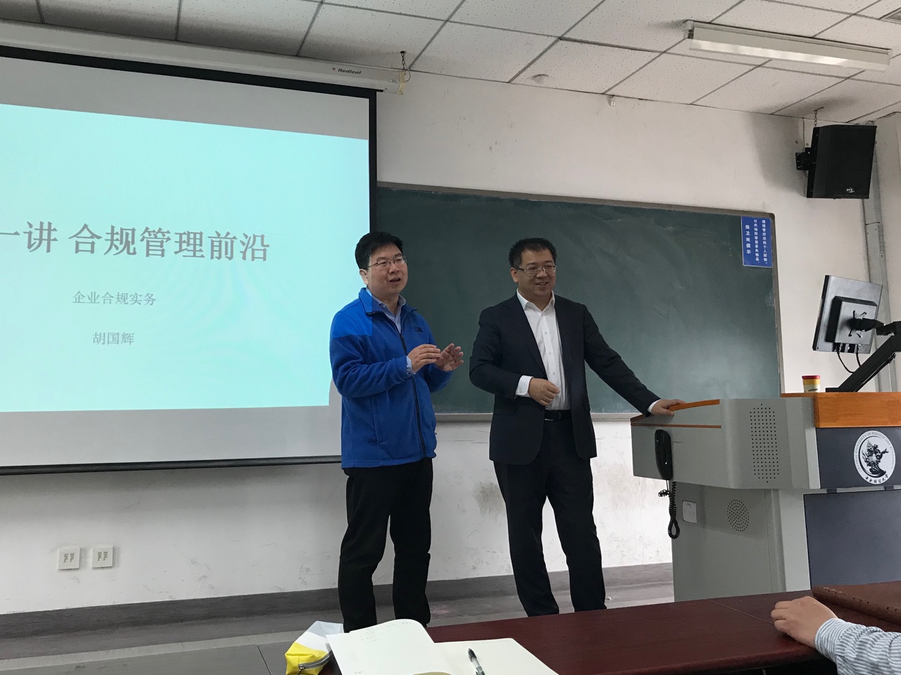 胡国辉教授是国家标准委《合规管理体系指南》标准工作组委员,曾任戴姆勒公司副总裁、大中华区合规官,戴尔公司北亚区道德与合规总监,专著有《企业合规概论》,擅长企业合规管理体系搭建和运行。胡教授曾于本月7日在我校沙河校区主教进行了题为“合规:法律人的职业蓝海”的法律实践讲座。本次开课,共吸引了我院2017级法律硕士(法学)班与法律硕士(非法学)班近30名同学的参与。
