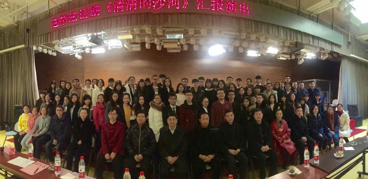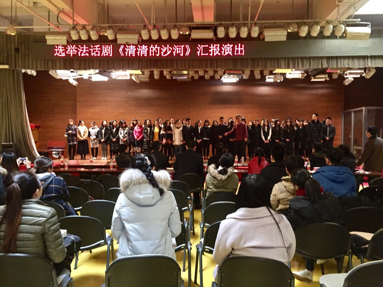 2016年12月18日上午9点,我院2015级《选举法》课程话剧《清清的沙河》在沙河校区大学生活动中心的金厅成功上演。选修《选举法》课程的我院2015级102名同学自编、自导并自演了本场话剧。
