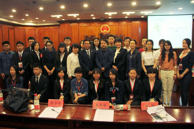 2015年5月8日晚7时,由中国政法大学团委、北京市学生联合会、北京市高等学校社团联合会、中国政法大学社团联合会主办,中国政法大学准律师协会承办的第十二届“圣运杯”准律师大赛决赛在中国政法大学明法楼407模拟法庭举行。来自中国政法大学、中国人民大学、北京外国语大学、南开大学、中央财经大学六所高校的八强选手进入决赛,展开激烈角逐。我院部分法律硕士研究生旁听了决赛。