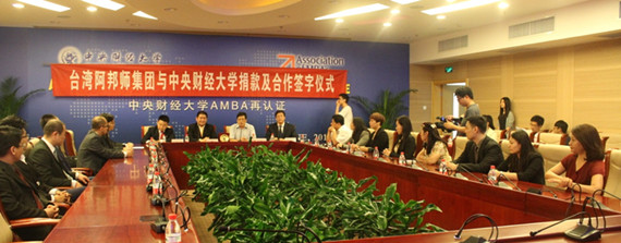 会谈结束后,在学术会堂604会议室举行了“台湾阿邦师集团与中央财经大学捐款及合作签字仪式”。签字仪式上,史建平副校长首先对阿邦师集团的捐赠表示感谢。他指出,作为一所具有财经特色的重点大学,学校发挥自身学科优势,加强与阿邦师集团的合作交流。这不仅有助于促进产学结合,同时有利于两岸文化教育的合作与交流。虽然中国内地尚未形成奢侈品拍卖市场,但作为该市场的大客户,其市场前景广阔。此次战略合作协议的签订,是双方合作的重要起点和里程碑,希望双方能够深化在人才培养、科学研究、资格培训等方面的合作,实现长期共赢。阿邦师集团李正邦总裁表示了对中财师生的高度认可,他指出,阿邦师集团非常看好大陆的二手奢侈品市场,已获得大陆外资拍卖执照资格。中央财经大学作为集团在内地合作的首家高等院校,其“求真求是,追求卓越”的办学理念,以及以经济学、管理学和法学学科为主体的专业优势,符合集团以及奢侈品市场人才的要求,双方的校企精诚合作必将推动奢侈品市场的发展。