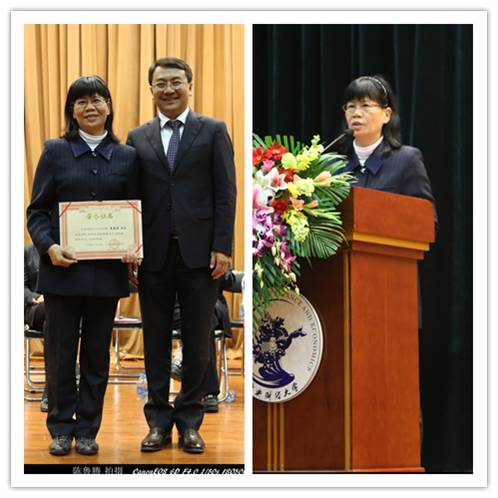 学生们取得今天如此骄人的成绩,不仅与自身努力密切相关,更不离开学院教师领导们夙兴夜寐的无私奉献。为此,学院专门设立了“岳成奖教金”这一奖项,以肯定并鼓励为我国卓越法律人才培养默默奋战在第一线的优秀教师们,今年的岳成奖教金授予了法学院曾筱清教授。在曾老师简短的获奖感言中,她表达了两份感谢,一份是感谢时代创造了这样一个重视经济建设和教育事业的大好时机,一份是对中财法学院这个温暖大家庭的感谢,这个团队中领导者、参与者和支持者的齐心奉献都在时刻鞭策着自己不敢懈怠。最后,“衷心祝福你们,在未来的校园生活里,快乐学习,享受大学生活的纯真和美好,收获尽量多的知识和阅历,健康、快乐地成长”,曾老师向所有新生献上了最诚挚的问候和祝福。曾老师的话语平实而感人,温润却有力,她坚定的目光让所有新生更加坚信,中财法学院,是一个孕育梦想的摇篮,选择中财法学院,必将是一个无悔的决定!