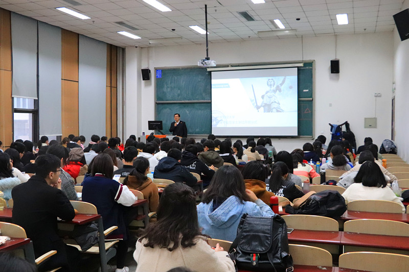 尹飞院长首先对双学位新生的到来表示热烈欢迎,随后从法学院和双学位项目的发展历程、办学初衷、对学生的要求和期盼等方面进行了讲述。他指出,我院不忘教学育人的初心,顺应新时代的要求,在2017年重启双学位项目,致力于为社会各界尤其是财经界培养更多兼具法学知识、风险防范意识和法治意识的应用型、复合型人才。经过双学位项目的培养,同学们可以系统地学习法律专业知识,培养法律思维和法律信仰。他希望同学们在认真学习法学课程的同时,提高对法治事件的敏感度,对各类社会现象更多地从法律层面进行分析和思考。他还希望同学们能够充分利用法学院的资源,做好与自己专业的融合,把握学习机会,发扬个性,保持好奇心,充分完善自己的人格。