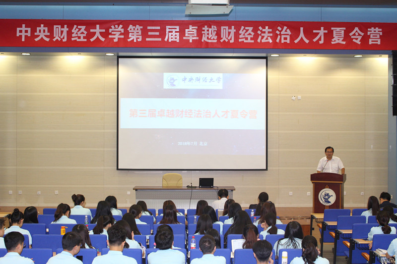 2018年7月10日下午,中央财经大学第三届卓越财经法治人才夏令营开营仪式在学术会堂402报告厅举行。共有来自全国数十所高校的84名营员参加开营仪式。法学院院长尹飞教授、院党委副书记徐颖研究员、副院长王克玉教授、副院长李伟副教授、博士生导师邢会强教授、院长助理郭维真副教授、学生工作办公室主任吴文国老师出席开营仪式。夏令营工作团队全体成员也参加了仪式。仪式由院团委书记尹力沉老师主持。