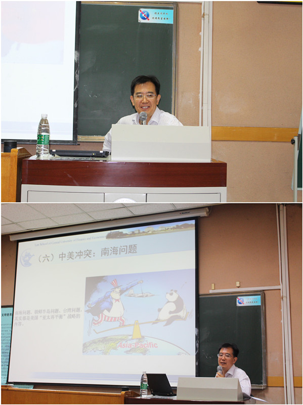 随后,借助中美贸易战这一背景,王克玉教授将话题上升到由来已久的中美冲突问题,并就中美冲突下的贸易投资、台海危机、南海争端等热点问题分别进行了详细阐述,同时结合国际法的相关理论知识,为营员们展示了冲突背景下所涉及的国际法律规制与经济利益博弈等问题。