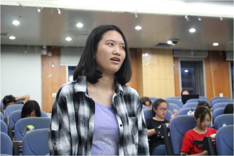 首先,历咏老师积极鼓励同学们要走出校门,走出国门,不要局限于小处,更不能只停留在细节研究之中。与之相反,同学们应该翱翔于广阔的天际,展望世界,展望未来,不固步自封,不自怨自艾,要学会沉浸在学海之中,实现更高层次的技艺修炼。在语言提升的过程中认识社会的差异,在比较学习的过程中实现飞跃进步。在这个天马行空,心浮气躁的时代,历咏老师提醒同学们“年轻人不要贪慕虚荣,要追求实实在在的东西。”并以高晓松的成长轨迹为例,教导同学们如何做到有情节、有情怀、有情操。若以功利作为成长的导向,我们将会迷失在这个浮世之中,被利益格式化,被名利机械化。“胜天半子,不如保持敬畏”,老师的话一针见血地道出了当代社会比较突出的问题,也为同学们的成长提出了金玉良言,引起了在场同学的深思。