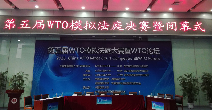 2012年,中国“WTO模拟法庭竞赛”于中国政法大学举办了首届比赛,至今已举办五届。该比赛是将WTO争端解决机制引入高校比赛的国内首例,比赛完全再现WTO争端解决程序,旨在推进高校师生对WTO规则的掌握与运用,推动我国的WTO法学教育,培养、选拔优秀的WTO谈判与争端解决人才。