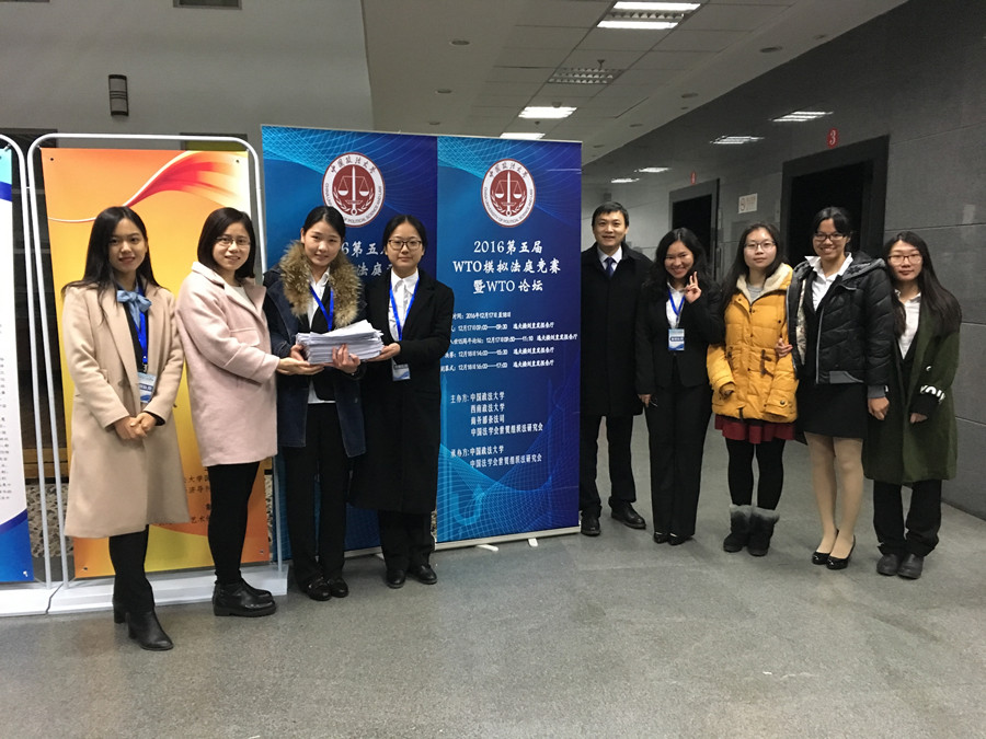 12月17日至18日,第五届中国“WTO模拟法庭竞赛”在中国政法大学举行。本次大赛由中华人民共和国商务部条法司、中国政法大学、西南政法大学主办,中国政法大学承办,北大、武大、法大、华政、中财等共计16所高校参加。我校代表队由法学院14级本科生冀朝艳、胡超凡、魏婷、郭小汀、黄露茗、郭莹、黄依妮、程晓月共8名队员组成,由沈健老师带队并全程指导,经过老师与队员们的共同努力,我校最终荣获第五届“WTO模拟法庭竞赛”三等奖。