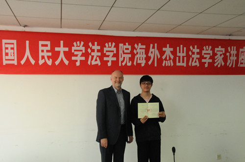 2013年4月2日,由中国人民大学主办为期8天的“海外杰出法学家系列课程”之“公法的理念”(the Idea of Public Law)圆满结束。该课程主讲人为伦敦政治经济学院(London School of Economics and Political Science)的著名公法学家马丁·洛克林教授。经过严格的考核与遴选,来自中国人民大学、北京大学、清华大学、武汉大学等国内顶尖法学院的博士生、硕士生、本科生参加了此次课程。我院高秦伟教授向马丁·洛克林教授推荐,特别给我院提供一个名额,本科生向文磊同学获得此次学习机会。