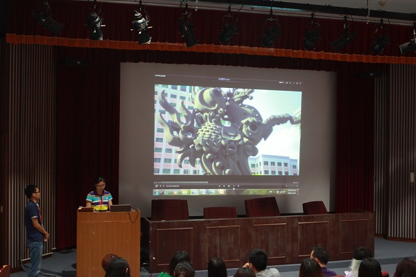 下午两点,开营仪式前的预备活动开始,政治大学的同学们为大陆的同学们带来了别开生面、创意十足的开场秀节目,介绍了台湾政治大学的历史文化、办学特色以及各院概况。为大陆同学服务的政治大学学生队辅们也做了活泼有趣的自我介绍。2012级的黄盛秦同学与2013级的韩露同学,在对学校介绍的环节中,播放了我院制作的视频,并讲解了幻灯片,展示了我校的风貌和中财人的风采,增进了两岸同学对中财的了解。