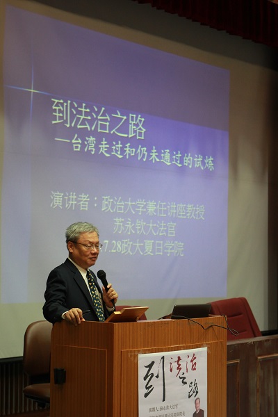 在政治大学的第一堂课,便是与大师的相遇,一头银发、儒雅平和苏永钦教授为大家讲解了《到法治之路——台湾走过和仍未通过的试炼》。苏永钦教授的研究领域横跨公法与私法,并且具有极为丰富的行政实务经验。苏永钦教授主要对台湾地区司法改革等问题进行了宏观讲解,引领我们了解台湾地区在司法上的经验和改革动向,加深了大家对台湾地区制度和社会状况的理解。
