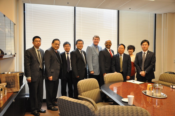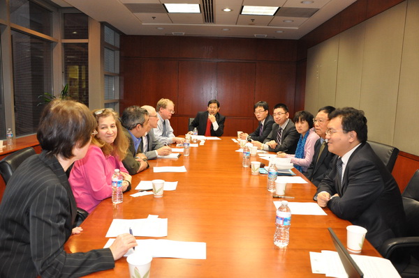 考察团26日访问了乔治·华盛顿大学法学院,就公共利益与公益诉讼与华大法学院的教师进行了座谈,乔治·华盛顿大学法学院主管国际交流的副院长Susan L. Karamanian教授,主管诊所教育的副院长Phyllis Goldfarb教授,公共利益与法律援助项目主任Alan Morrison教授、副主任David M. Johnson教授,政府采购项目副院长Daniel I. Gordon教授,政府合同法项目联合主任Christopher R. Yukins参与了座谈。甘功仁教授介绍了我院近年来的发展情况,考察团与座谈教授就法律诊所教育的开展、两院合作交流的方式和途径进行了广泛交流。我院在乔治·华盛顿访问的福布莱特学者曹富国教授参与了会谈。在华盛顿期间,考察团还看望了在美利坚大学访学的我院教师苏苗罕博士。