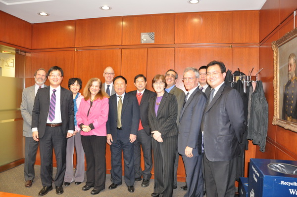 考察团22日飞抵纽约,在纽约访问了中华人民共和国驻纽约总领馆,常全生领事接见了代表团,并和考察团就教育国际化问题进行了交流。在纽约期间,代表团还看望了在纽约执业的校友钱志远律师。
