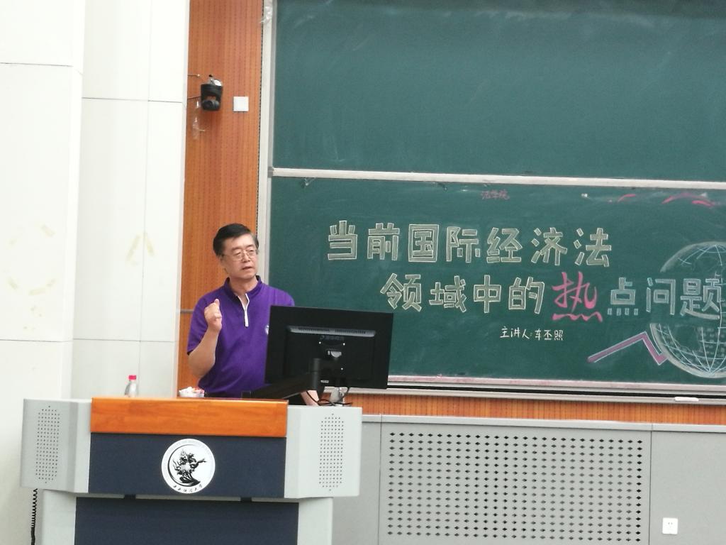 2018年5月17日下午6点半,“当前国际经济法领域中的热点问题”主题讲座在中央财经大学沙河校区学院4号楼107教室举行。讲座特邀清华大学法学院教授、博士生导师车丕照教授作为主讲人,我院副院长王克玉教授主持,我院历咏老师、院长助理沈健老师、时业伟老师和部分学生共同参与了本次讲座。本讲座为“中央财经大学专题学术讲座项目资助”:新时代国际经济法制领域的重大问题系列讲座的开篇之讲,在场师生围绕国际经济法领域的热点问题进行了精彩而深入的交流和讨论。