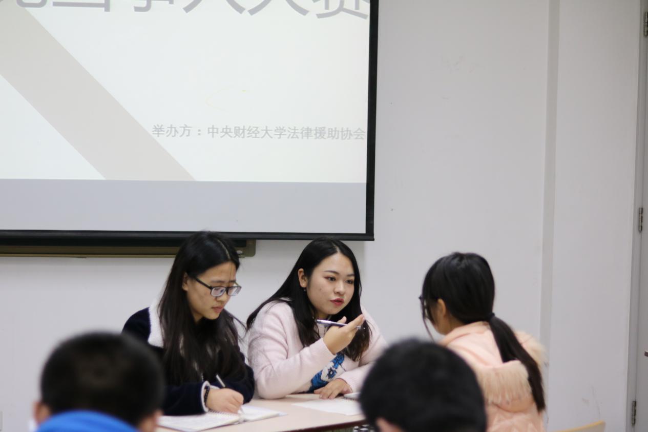 2016年12月8日晚,中央财经大学法律援助协会第二届“会见当事人”大赛在沙河校区成功举行。本次大赛邀请了法学院讲师商浩文博士、法学院团总支书记尹力沉老师、法律援助协会会长金英淑、法律援助协会往届副会长秦凯担任评委。