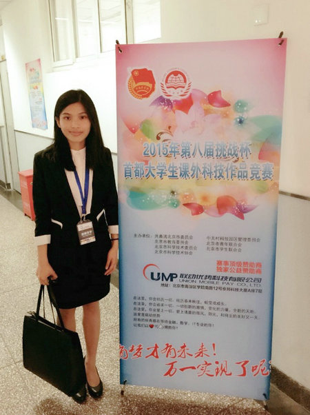2015年5月30日,第八届“挑战杯”首都大学生课外学术科技作品竞赛决赛答辩在北京联合大学举行。法学院2013级法律硕士(法学)专业研究生黄巧婷同学荣获一等奖,创造学院历史上的最好成绩。