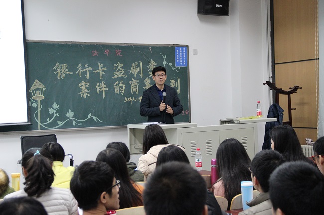 受到中央财经大学法学院法律实务论坛的邀请,2015年12月3日晚,北京市海淀区人民法院民三庭庭长戴国法官做了题为“银行卡(借记卡)盗刷类案件的商事审判”的审判实务讲座。法学院法律实验与实践教学中心主任、院长助理李伟副教授担任讲座主持人,王克玉副教授、刘君博博士以及2015级研究生和部分本科生参加了本次讲座。