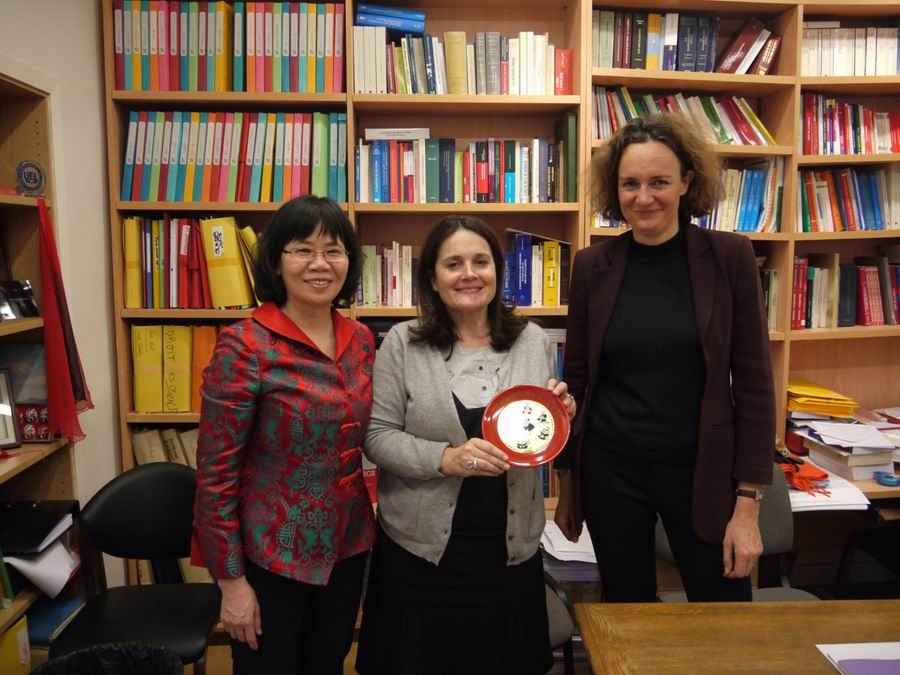 考察团于18日赶赴巴黎二大,与巴黎二大的外事交流负责人和国际法Cosson教授进行了会谈。双方互相就英文课程的开发和涉外项目的推进情况进行了介绍,并就学生互换和联合研究等合作事项进行了商谈。