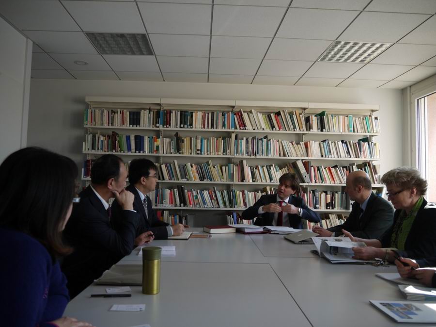 考察团于17日赶赴卢森堡大学。法学研究所主任Hiez教授和法律经济金融系的教师代表Hofmann教授热情接见了考察团,双方就学生交流和教师互访进行了交谈,并就开办暑期项目和其他事项的合作前景进行了探讨。
