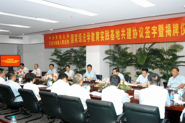 长期以来,中央财经大学的法学教育始终坚持以“实践教学”为特色,将法学实践教学作为培养“适合社会需要的复合型、应用性、国际化高素质人才法律人才”的重要环节。“中央财经大学——天津市高级人民法院国家级法学教育实践基地”的建设是多年来我校与天津市高级人民法院合作的进一步加强、深化和提升。早在2009年,我校法学院即与天津市高级人民法院开始了一系列合作共建。合作内容包括派遣学生开展专业实习、合作进行课题研究和业务培训、互派法官和教师进行人员交流等。目前,中央财经大学24名法学院学生正在天津市高级人民法院和第一、第二中级人民法院实习。双方围绕实践基地的其他合作项目正在进一步研究和展开。
