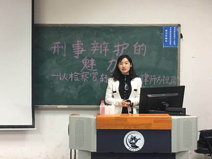 讲座的最后,程晓璐律师以优美的文字,描述了优秀律师的形象,指出一个好的律师所应该具备的四个标准——法律专家、心理学家、演说家、社会活动家。在讲座中,徐律师不禁让同学们深深地领略到了刑辩律师的魅力便在于“深刻体验现实社会,感受人间百态”,刑辩律师制度创设本身就是要“通过双方适度的博弈达到动态的平衡,实现兼听则明”,并提出刑辩律师是“社会稳定的助推器”。同时,程晓璐律师简述了检察官和刑辩律师的共同点,指出二者同样作为法律职业共同体不可分割的组成部分,在追求法治进步的出发点和社会公平正义的价值目标是一致的,即对公平、正义、良知的充满激情和妥善传达。
