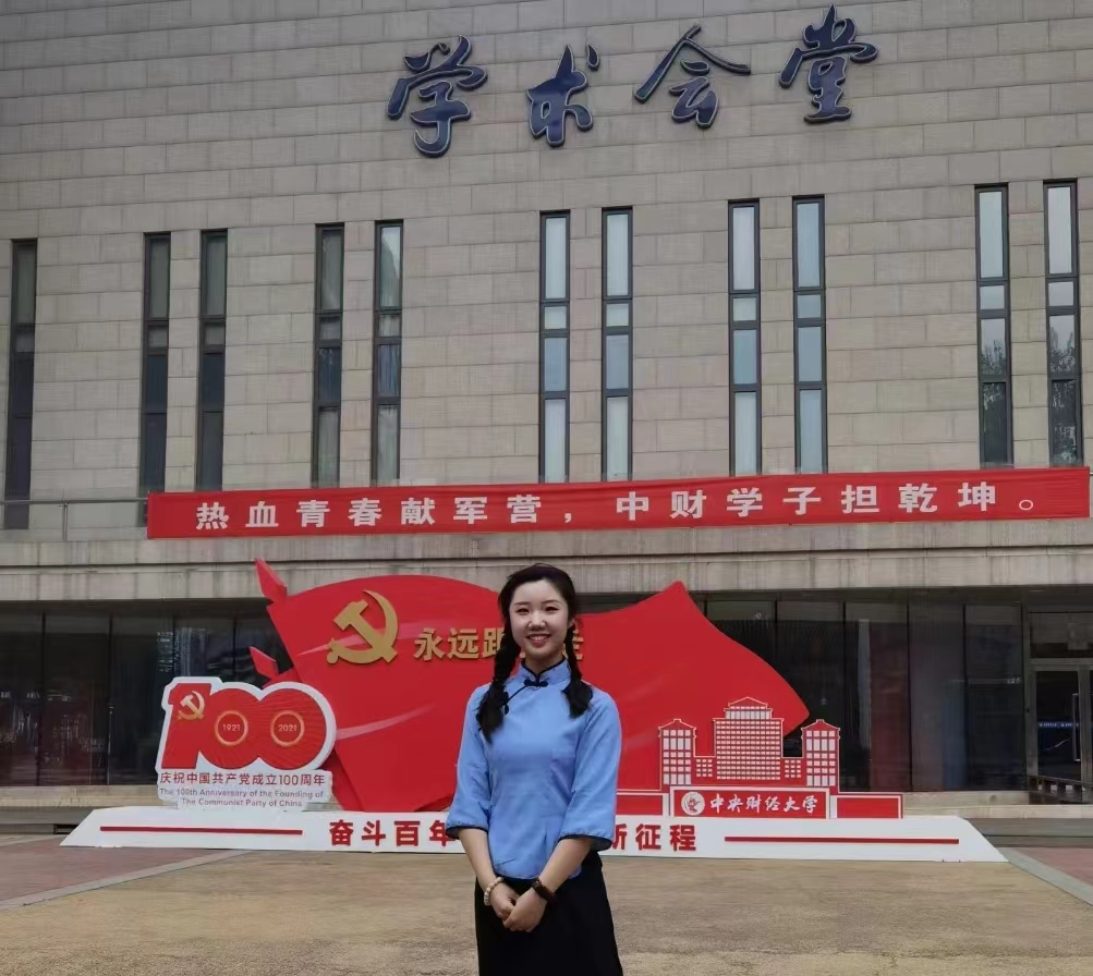 沈小倩,女,贵州贵阳人,穿青人,中央财经大学法学院2023届民商法学硕士研究生,师从武腾老师,曾是第27届中央财经大学校研究生会主席团成员,拟入职中国长城资产管理股份有限公司贵州省分公司。