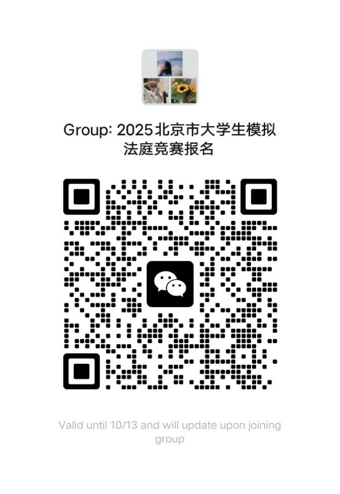 另:请报名同学扫描文下所附二维码进入2025北京市大学生模拟法庭竞赛报名群