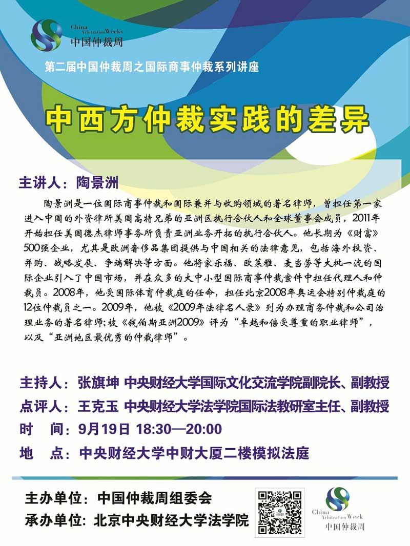 [讲座]陶景洲:中西方仲裁实践的差异