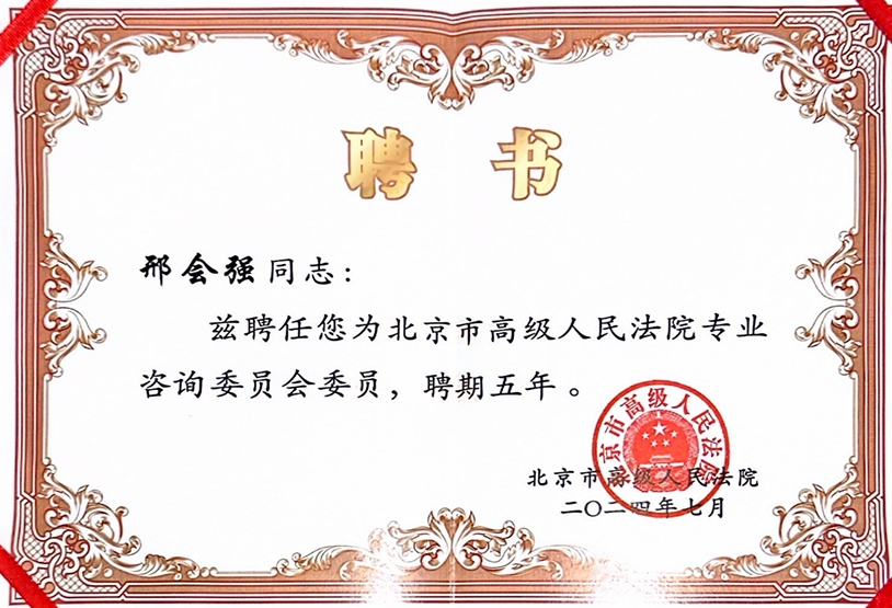 近日,邢会强教授获聘北京市高级人民法院专业咨询委员会委员,任期五年。